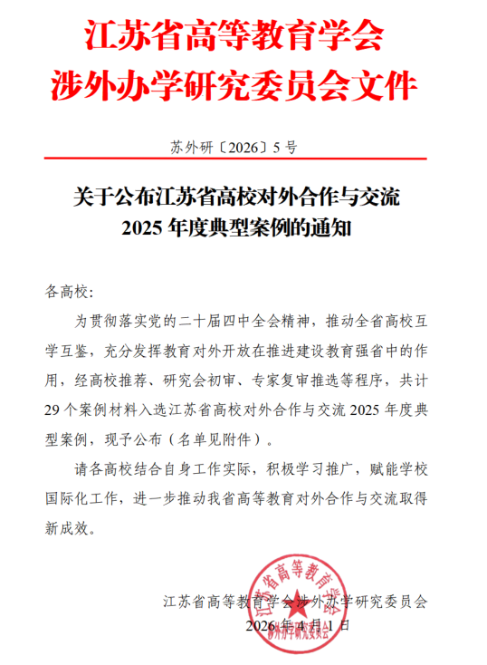 我校案例入选江苏省高校对外合作与交流2025年度典型案例